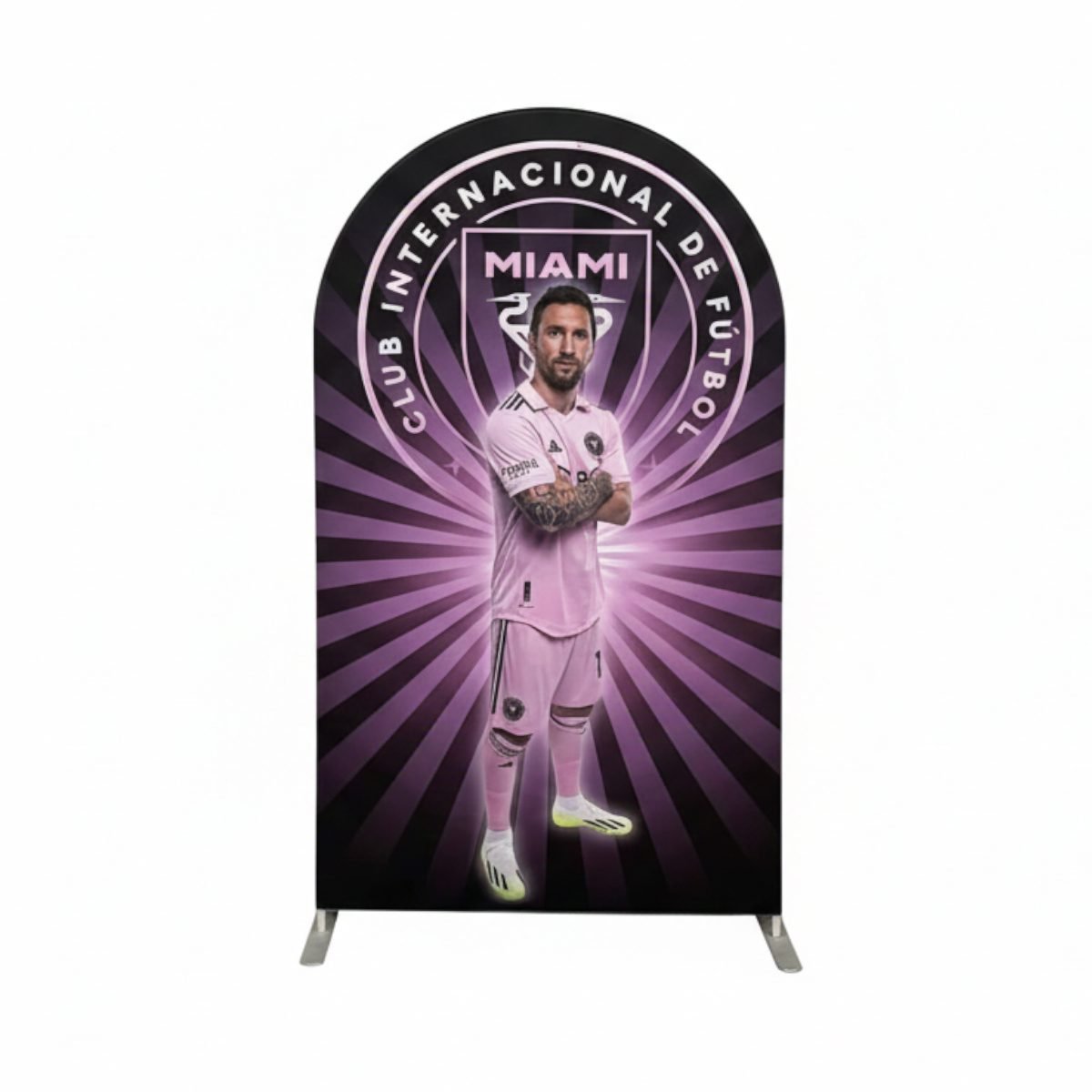Bring the magic of Miami to your party! Our latest Lionel Messi Inter Miami Arch Backdrop is a must-have for every soccer fan. Whether it’s a birthday or a game-day celebration, this pink soccer star background creates the perfect photo op. Lightweight, durable, and ready for the spotlight.