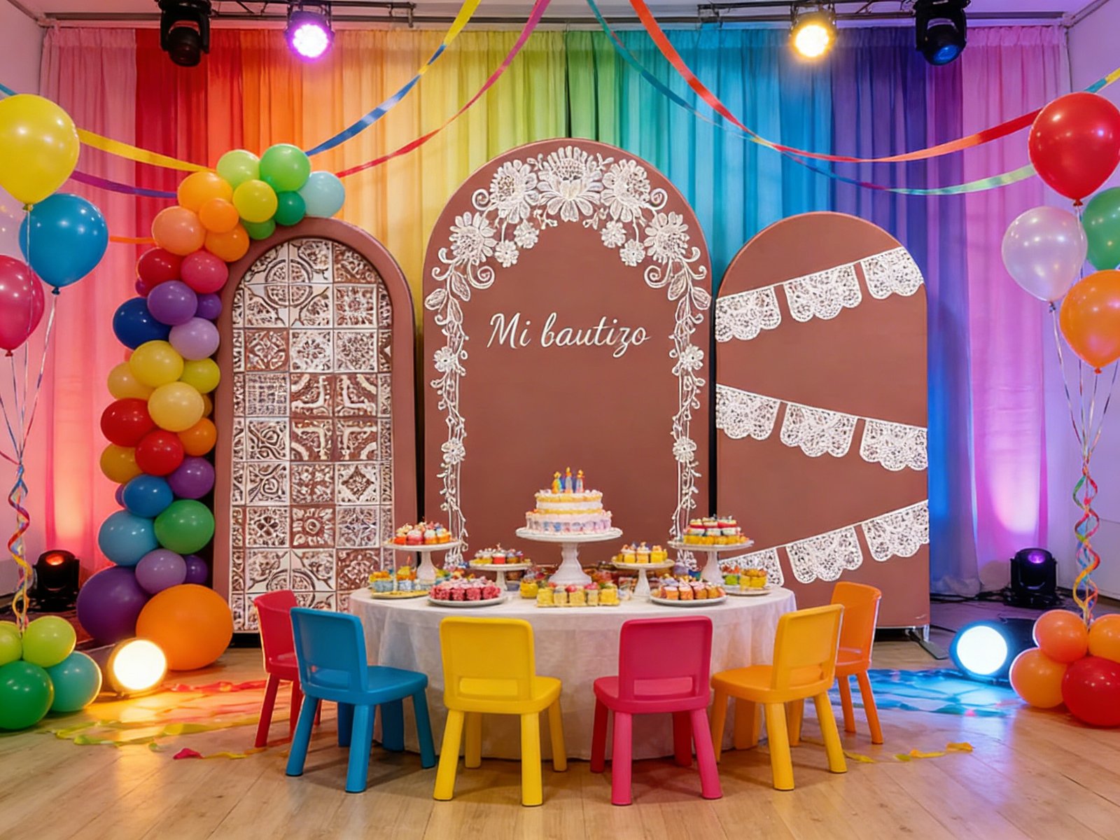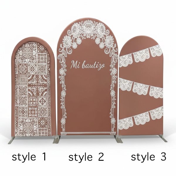 This Chiara Wall set centers on traditional Mexican Talavera tile patterns, paired with romantic bohemian lace trims. The dusty rose base color exudes a vintage, gentle texture, while the central “Mi bautizo” text perfectly echoes the baptism rituals in Latin American culture, making it an ideal choice for creating an immersive cultural-themed party.Perfect for Mexican-style baptism parties, bohemian weddings, Latin-themed birthday celebrations, or as a backdrop for welcome areas, photo booths, and dessert tables. It instantly elevates the ambiance of any event.