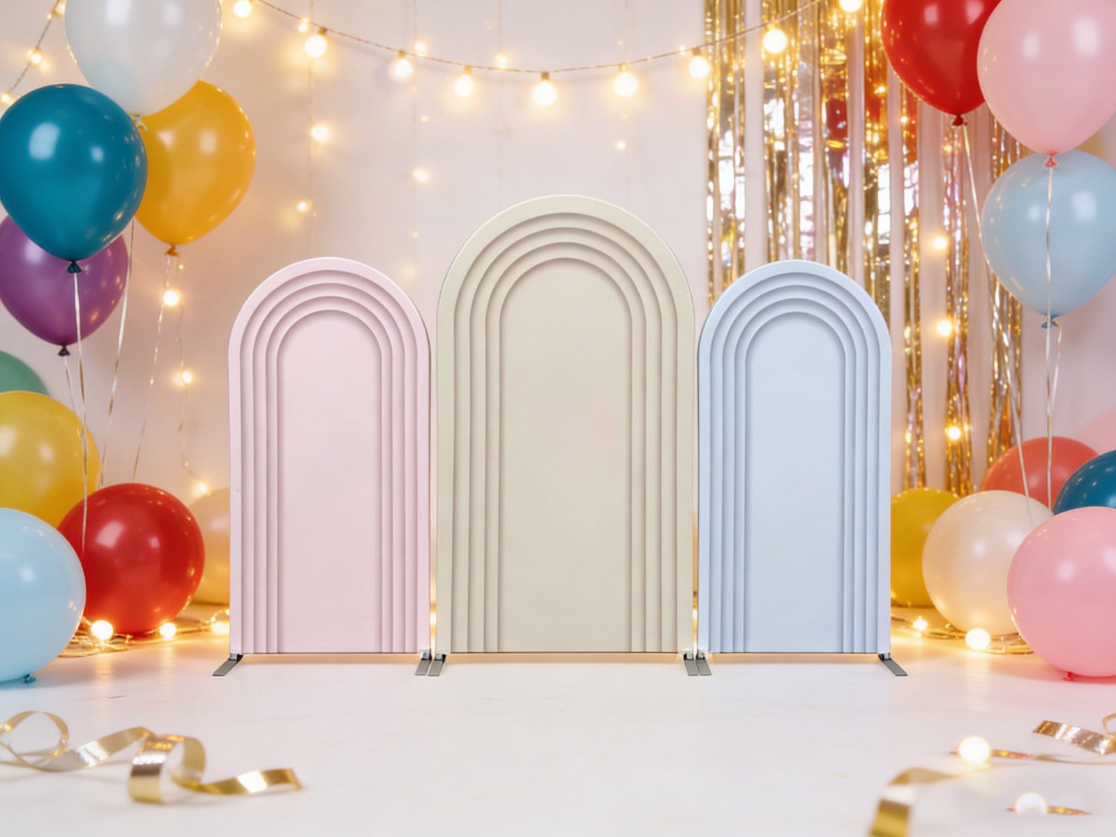 Pastel Grooved Chiara Arch Backdrop Set – 3-Piece Ribbed Texture Party Background