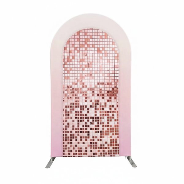 Pink Gradient Sequin Chiara Wall Arch Backdrop,Ideal for birthday parties, proposal setups, wedding welcome areas, live stream backdrops, and boho-themed events.