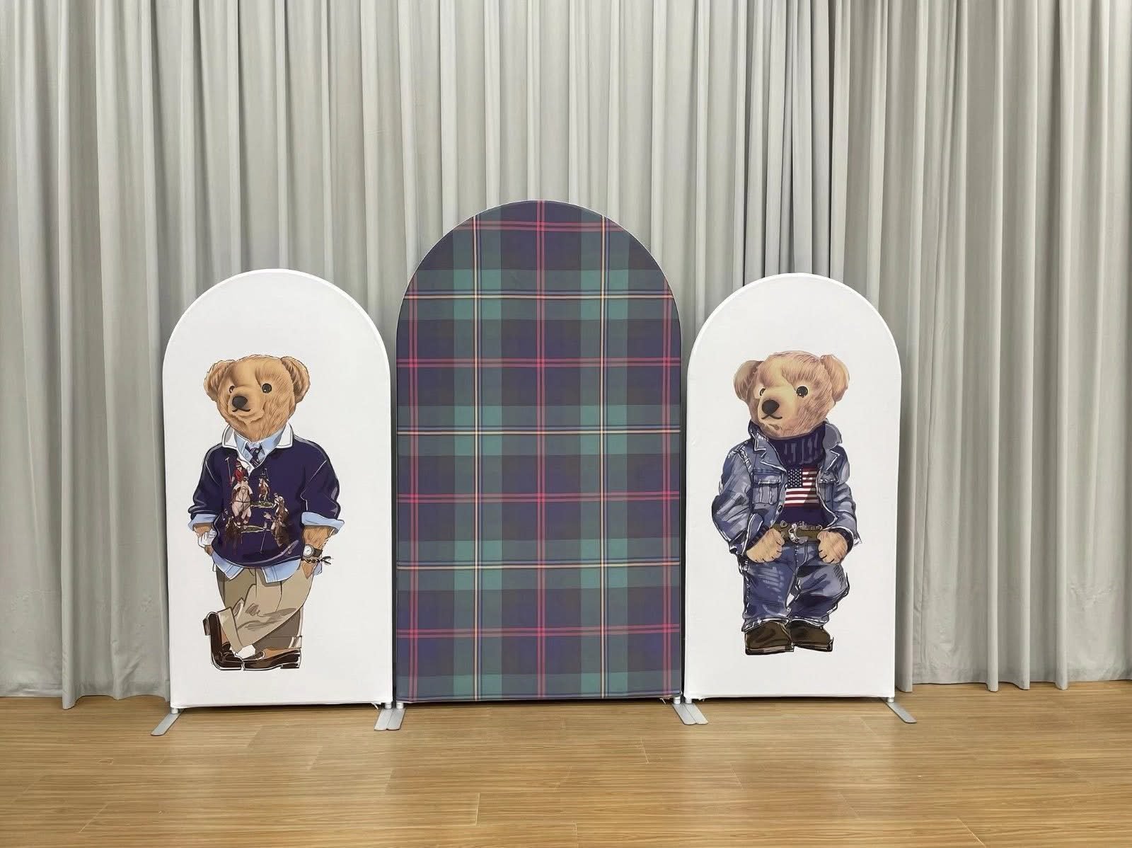 Preppy Teddy Bear Theme Chiara Arch Covers – Set of 3 Fabric Backdrop for Boy’s Baby Shower